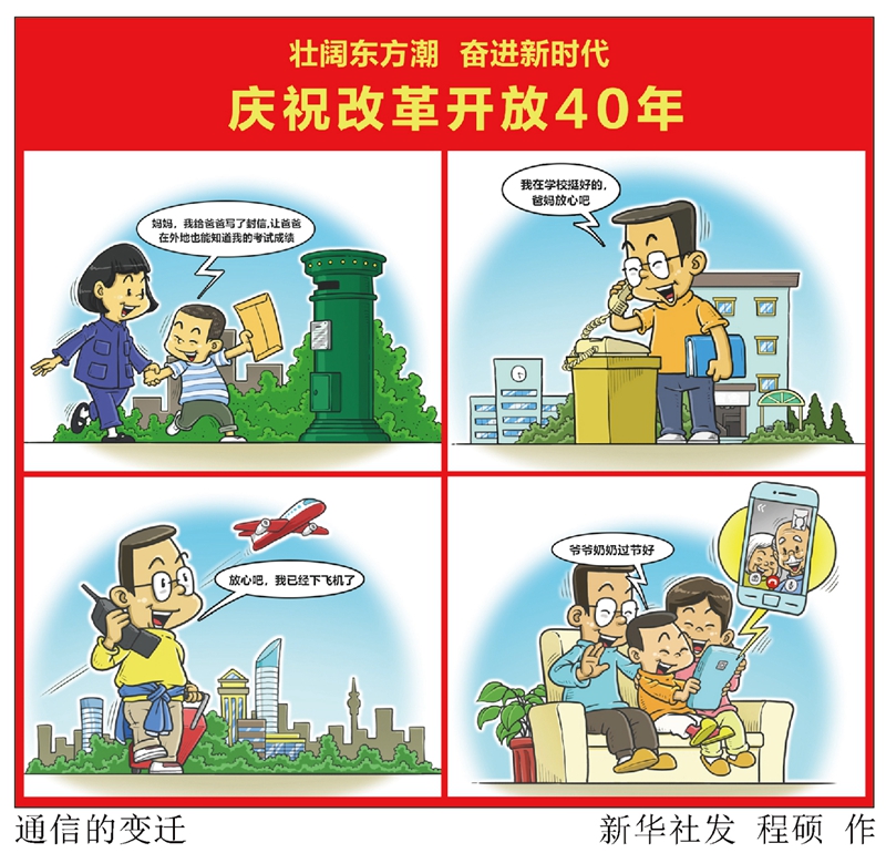 通信:以前,我們靠寫信,讓爸媽在外地也能知道我們的考試成績;后來,我們用座機,告訴爸媽“我在學(xué)校挺好的”;再后來,我們無論出行到哪里,都可以隨時拿出手機跟家人說聲“放心吧”;如今,我們更加可以方便地打開手機視頻,問候爺爺奶奶“過節(jié)好”。↓↓