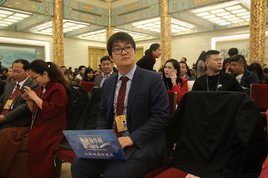 圖為2018年全國兩會(huì),王子暉在總理記者會(huì)現(xiàn)場(chǎng)采訪。