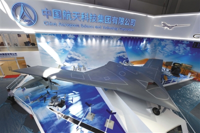 在中國航天科技集團有限公司展區(qū),彩虹-7型(CH-7)高空長航時隱身無人機系統(tǒng)昨天也首次在航展面世。