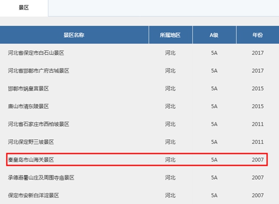 文化和旅游部官網(wǎng)近日更新5A級旅游景區(qū)名錄,2015年被撤銷5A級景區(qū)資質(zhì)的山海關(guān)景區(qū)悄然出現(xiàn)在名錄中。這意味著,山海關(guān)景區(qū)重返5A級景區(qū)。目前,中國的5A級景區(qū)達到了259家。