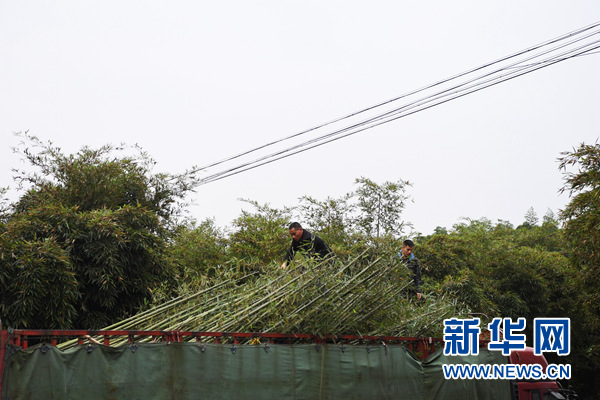 工作人員在位于重慶市大足區(qū)寶興鎮(zhèn)的雷竹林里裝運(yùn)即將銷往外地的竹苗(11月20日攝)。新華社記者王全超攝