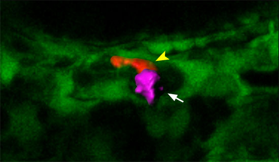 共聚焦顯微鏡活體觀察造血干細(xì)胞歸巢。