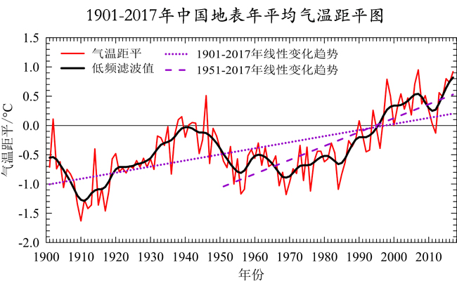 1901-2017年中國地表年平均氣溫距平圖 圖片數(shù)據(jù)來源:國家氣候中心