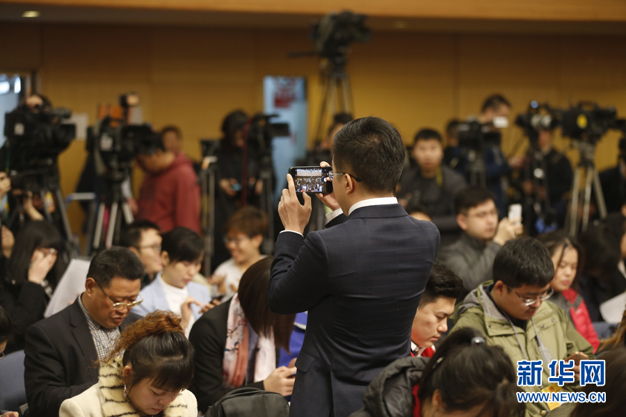 十三屆全國人大一次會(huì)議新聞中心3月6日上午10時(shí)在梅地亞中心多功能廳舉行記者會(huì),邀請(qǐng)國家發(fā)展和改革委員會(huì)主任何立峰、副主任張勇、副主任寧吉喆就“創(chuàng)新和完善宏觀調(diào)控,推動(dòng)高質(zhì)量發(fā)展”相關(guān)問題回答中外記者提問。圖為記者在現(xiàn)場(chǎng)拍攝。 新華網(wǎng)/中國政府網(wǎng) 陳杰 攝