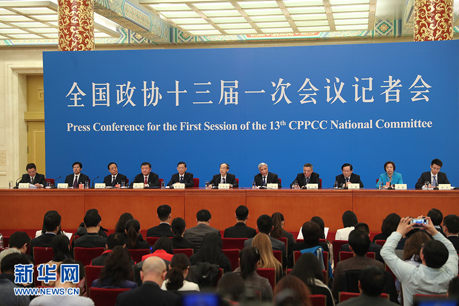 民主黨派中央和全國工商聯(lián)領(lǐng)導(dǎo)人記者會(huì)3月6日下午在人民大會(huì)堂金色大廳舉行,邀請民革中央主席萬鄂湘、民盟中央主席丁仲禮、民建中央主席郝明金、民進(jìn)中央主席蔡達(dá)峰、農(nóng)工黨中央主席陳竺、致公黨中央主席萬鋼、九三學(xué)社中央主席武維華、臺盟中央主席蘇輝、全國工商聯(lián)主席高云龍回答記者提問。圖為記者會(huì)現(xiàn)場。新華網(wǎng)/中國政府網(wǎng) 陳杰 攝