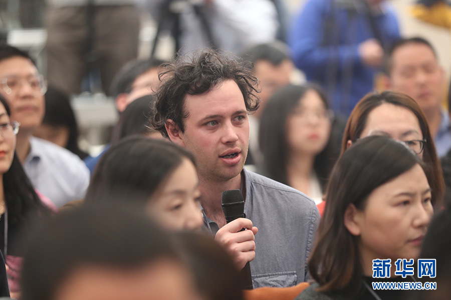 ??? 全國政協(xié)十三屆一次會議3月8日15:00在人民大會堂新聞發(fā)布廳舉行第二場記者會,邀請中央財經(jīng)領(lǐng)導(dǎo)小組辦公室副主任楊偉民,中國進出口銀行董事長、黨委書記胡曉煉,農(nóng)業(yè)部原副部長陳曉華,全國工商聯(lián)副主席、清華大學(xué)經(jīng)濟管理學(xué)院院長錢穎一,中國中化集團有限公司黨組書記、董事長寧高寧就推動經(jīng)濟高質(zhì)量發(fā)展回答記者提問。圖為法新社記者提問。新華網(wǎng)/中國政府網(wǎng) 郝廣鵬 攝