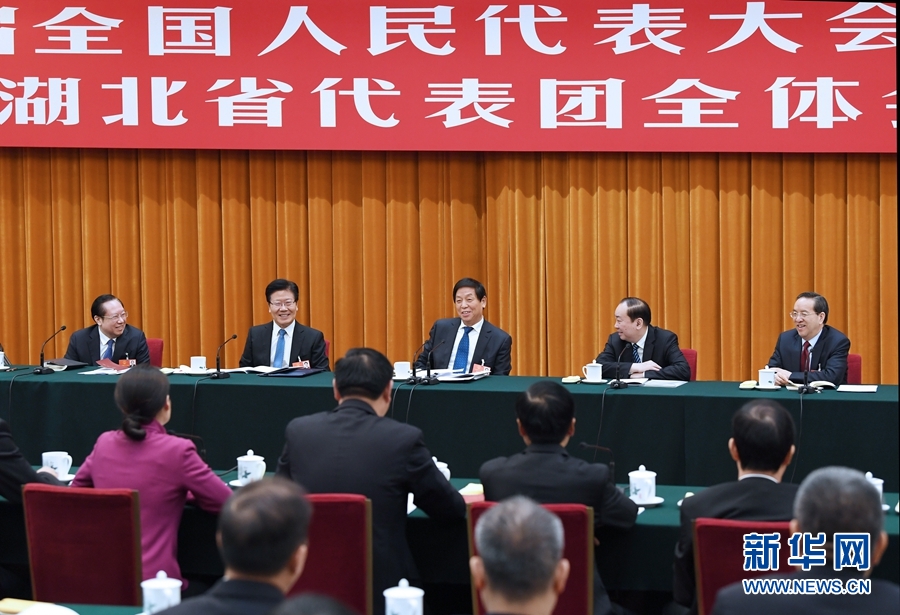3月9日,中共中央政治局常委栗戰(zhàn)書參加十三屆全國人大一次會議湖北代表團(tuán)的審議。 新華社記者 饒愛民 攝