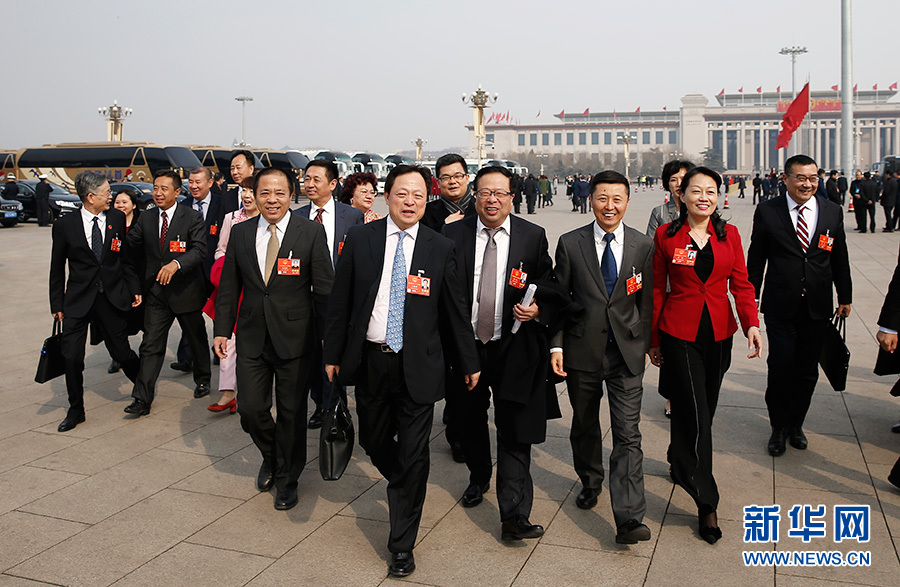 ??? 十三屆全國人大一次會議9日下午3時在人民大會堂舉行第二次全體會議,聽取最高人民法院院長周強關于最高人民法院工作的報告,聽取最高人民檢察院檢察長曹建明關于最高人民檢察院工作的報告。圖為代表們走向會場。新華網(wǎng)/中國政府網(wǎng)?陳杰 攝