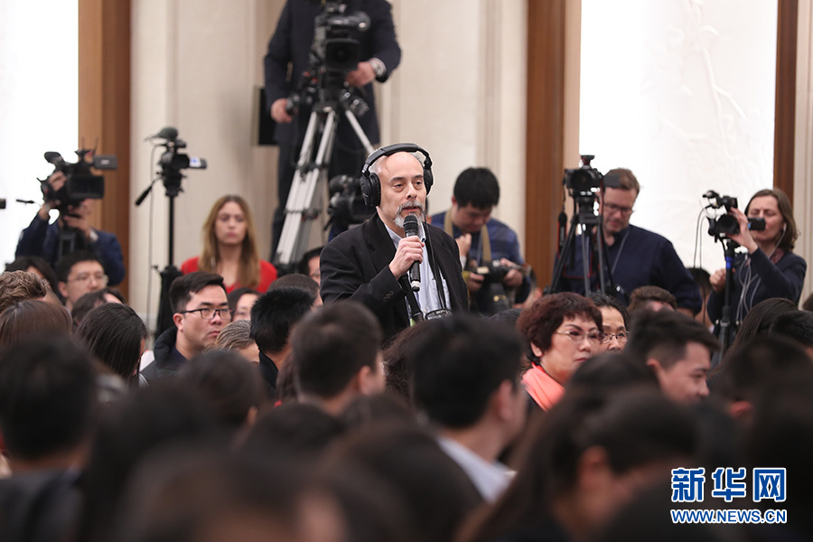 3月11日,十三屆全國人大一次會議新聞中心在人民大會堂一樓新聞發(fā)布廳舉行記者會,邀請十三屆全國人大一次會議秘書處法案組組長、全國人大常委會法工委主任沈春耀,法案組副組長、全國人大常委會法工委副主任鄭淑娜就“憲法修正案”相關(guān)問題回答中外記者提問。圖為美國全國公共廣播電臺記者提問。新華網(wǎng)/中國政府網(wǎng) 陳杰 攝