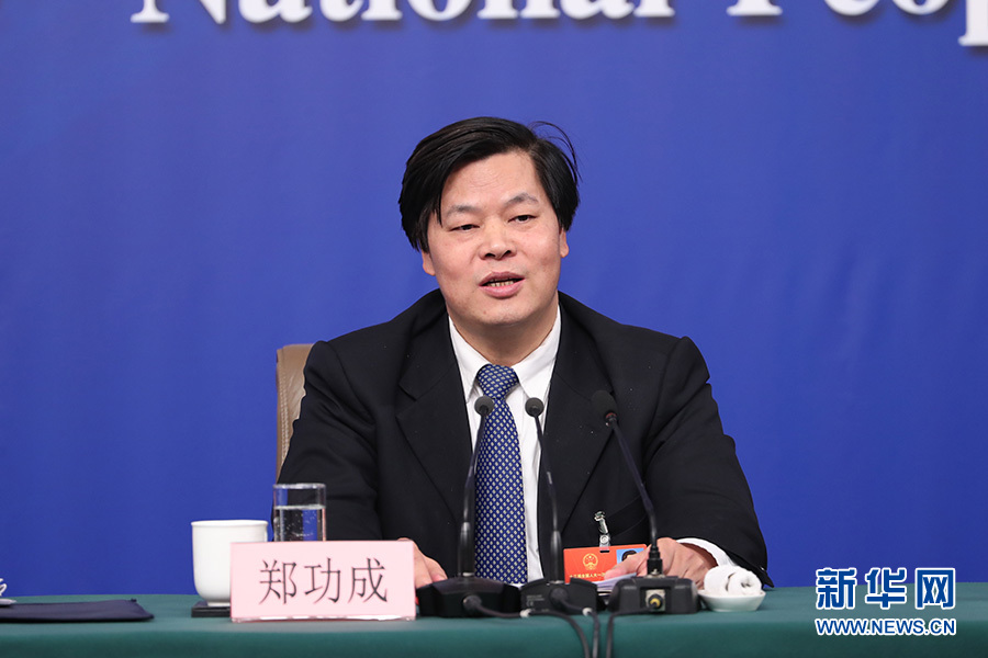 十三屆全國人大一次會議新聞中心于3月12日15時在梅地亞中心多功能廳舉行記者會,邀請十二屆全國人大財經(jīng)委副主任委員尹中卿、教科文衛(wèi)委副主任委員吳恒、環(huán)資委副主任委員袁駟、內(nèi)司委委員鄭功成,全國人大常委會預(yù)算工委副主任劉修文、常委會辦公廳秘書局巡視員傅文杰就“人大監(jiān)督工作”相關(guān)問題回答中外記者提問。圖為內(nèi)司委委員鄭功成回答記者提問。新華網(wǎng)/中國政府網(wǎng) 陳杰攝