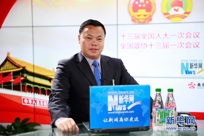 圖為河南省平頂山市寶豐縣大黃村黨支部書記馬豹子做客新華網(wǎng)2018全國兩會特別訪談