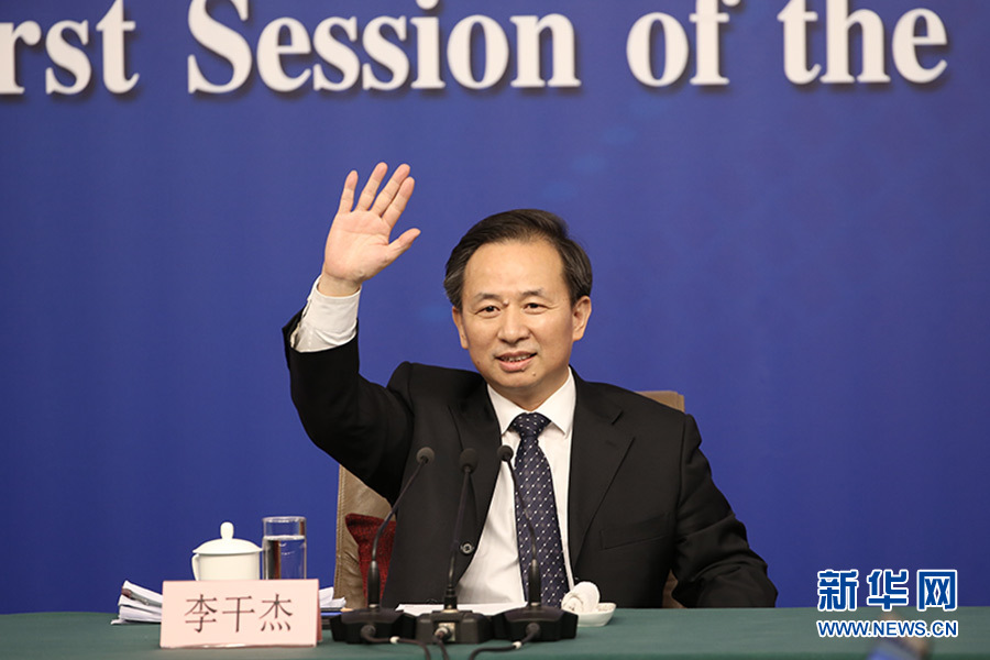 十三屆全國人大一次會議新聞中心3月17日(星期六)15時(shí)在梅地亞中心多功能廳舉行記者會,邀請環(huán)保部部長李干杰就“打好污染防治攻堅(jiān)戰(zhàn)”相關(guān)問題回答中外記者提問。圖為環(huán)保部部長李干杰。新華網(wǎng)/中國政府網(wǎng) 陳杰 攝