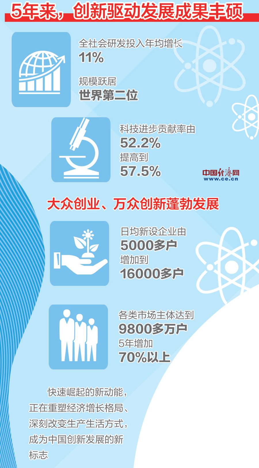 這5年,創(chuàng)新驅(qū)動發(fā)展成果豐碩。全社會研發(fā)投入年均增長11%,規(guī)模躍居世界第二位;科技進(jìn)步貢獻(xiàn)率提高了5.3個百分點;載人航天、深海探測、量子通信、大飛機(jī)等重大創(chuàng)新成果不斷涌現(xiàn);高鐵網(wǎng)絡(luò)、電子商務(wù)、移動支付、共享經(jīng)濟(jì)等引領(lǐng)世界潮流……這一切,都源于我們實施的創(chuàng)新驅(qū)動發(fā)展戰(zhàn)略。在今年兩會上,代表委員圍繞“創(chuàng)新”這個關(guān)鍵詞,有講不完的話題。