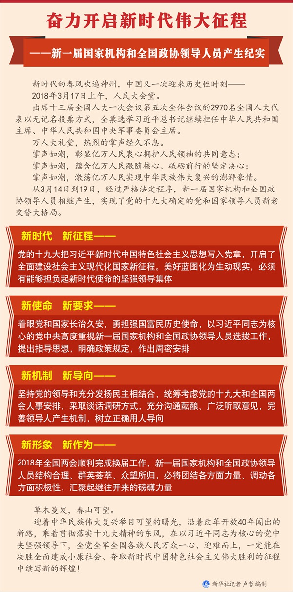 新華社北京3月19日電? 題:奮力開啟新時(shí)代偉大征程——新一屆國(guó)家機(jī)構(gòu)和全國(guó)政協(xié)領(lǐng)導(dǎo)人員產(chǎn)生紀(jì)實(shí)