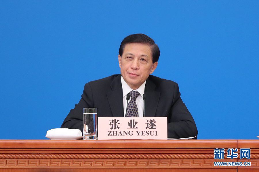 3月20日上午,十三屆全國人大一次會議閉幕后,國務(wù)院總理李克強在人民大會堂三樓金色大廳會見采訪十三屆全國人大一次會議的中外記者并回答記者提出的問題。圖為大會發(fā)言人張業(yè)遂。新華網(wǎng)/中國政府網(wǎng) 翟子赫 攝