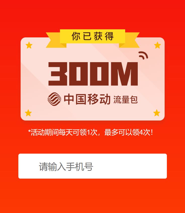 3.注冊用戶每天只可以領(lǐng)取1個(gè)流量包(300m),最多可分4天領(lǐng)取4次,最高可獲得1.2G流量;