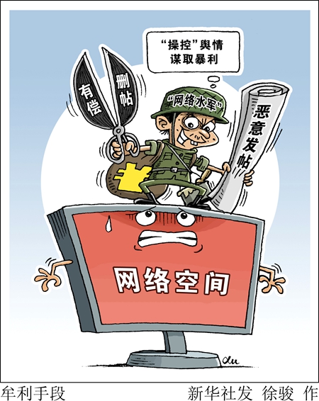 湖北、福建等地警方近日相繼破獲“網(wǎng)絡(luò)水軍”團(tuán)伙犯罪案件,揭開(kāi)了“網(wǎng)絡(luò)水軍”非法經(jīng)營(yíng)的手法和套路。“新華視點(diǎn)”記者調(diào)查發(fā)現(xiàn),“網(wǎng)絡(luò)水軍”明碼標(biāo)價(jià),通過(guò)刪帖、發(fā)帖,有的用幾十萬(wàn)元就能“操控”輿情。