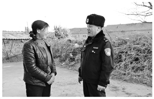 小蒜溝站鐵路沿線村莊較多,村民大都有家養(yǎng)牲畜,巡線之余,民警們還要走街串巷,向村民們宣傳鐵路安全知識(shí)?!岸竽?今天又來(lái)到咱們家了,還是那個(gè)事,主要跟您說(shuō)一下咱們家里養(yǎng)的牛,養(yǎng)的羊,一定不要去鐵路兩側(cè)放。知道吧,你忘了去年咱們簽的協(xié)議,所以說(shuō)這事吧,咱們的鐵路安全很重要,一旦咱們?nèi)ツ欠叛蚍排?火車把咱牛羊撞了,咱們自己受損失?!庇捎诔D暄策壯簿€入村宣傳,民警和沿線村民都熟悉了,宣傳起來(lái)像是在嘮家常。
