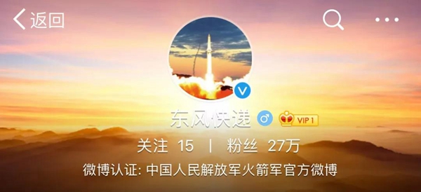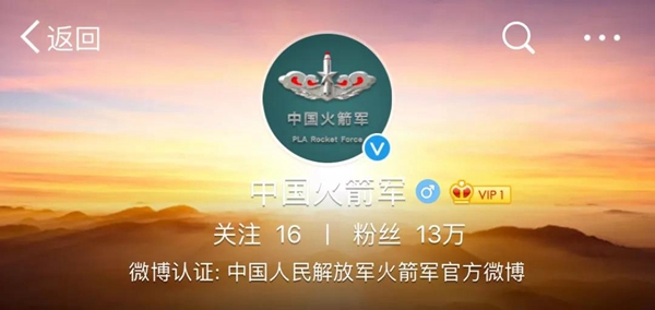 對(duì)于火箭軍官方微博上線