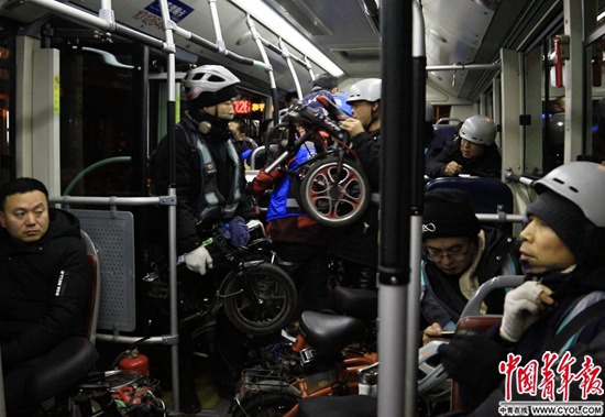 夜30路上有許多他的“車友”,其中一些是專門去鳳凰嶺等地爬山的,拄著登山杖,戴著裹住下巴的頭巾,背著登山包,這批人自稱“山友”。車里年齡最大的是一對老夫婦,83歲了,每天上車都有人把最穩(wěn)當?shù)淖蛔尳o他們。車上曾經有位老人,“出勤率”比別人都高,被戲稱為“車長”。后來“車長”搬了家,改乘其他線路了。這些老人回程時往往已經天亮,但他們大多不愛坐地鐵,覺得“公交車更方便”。