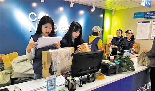 左圖 四川外國語大學(xué)綜合物流服務(wù)中心內(nèi),工作人員精準(zhǔn)記錄著快遞末端的流通信息。