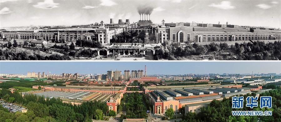 拼版照片:上圖為20世紀(jì)50年代的第一汽車制造廠廠區(qū)(資料圖片);下圖為2019年6月12日無人機(jī)拍攝的一汽廠區(qū)全景(新華社記者 許暢 攝)。新華社發(fā)