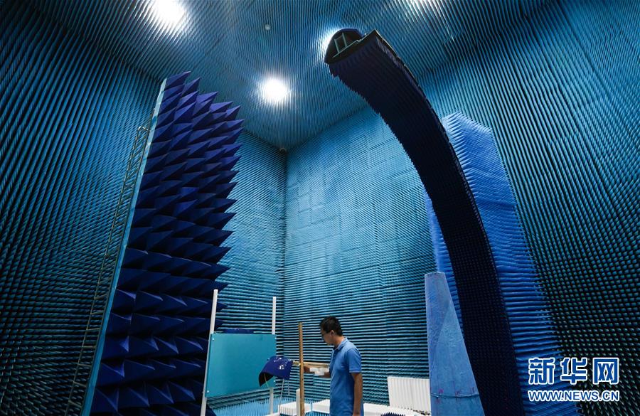 在江蘇南京江寧經(jīng)濟(jì)技術(shù)開發(fā)區(qū),科研人員在網(wǎng)絡(luò)通信與安全紫金山實驗室的微波暗室內(nèi)工作(6月6日攝)。新華社記者 李響 攝
