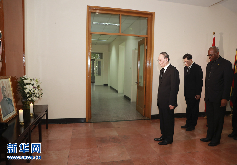 王岐山在穆加貝遺像前肅立默哀,并在吊唁簿上題詞,代表中國(guó)政府和人民對(duì)穆加貝的逝世表示最深切的哀悼,向津巴布韋政府和人民以及穆加貝的親屬表示最誠(chéng)摯的慰問(wèn)。王岐山表示,穆加貝是津巴布韋和非洲杰出政治家和民族解放運(yùn)動(dòng)領(lǐng)導(dǎo)人,為推動(dòng)中津、中非友好作出了卓越貢獻(xiàn)。中方珍視中津傳統(tǒng)友誼,愿同津巴布韋政府和人民一道,推動(dòng)中津全面戰(zhàn)略合作伙伴關(guān)系不斷向前發(fā)展。相信在姆南加古瓦總統(tǒng)領(lǐng)導(dǎo)下,津巴布韋人民一定會(huì)化悲痛為力量,在實(shí)現(xiàn)國(guó)家穩(wěn)定和建設(shè)發(fā)展道路上不斷取得新的更大成就。