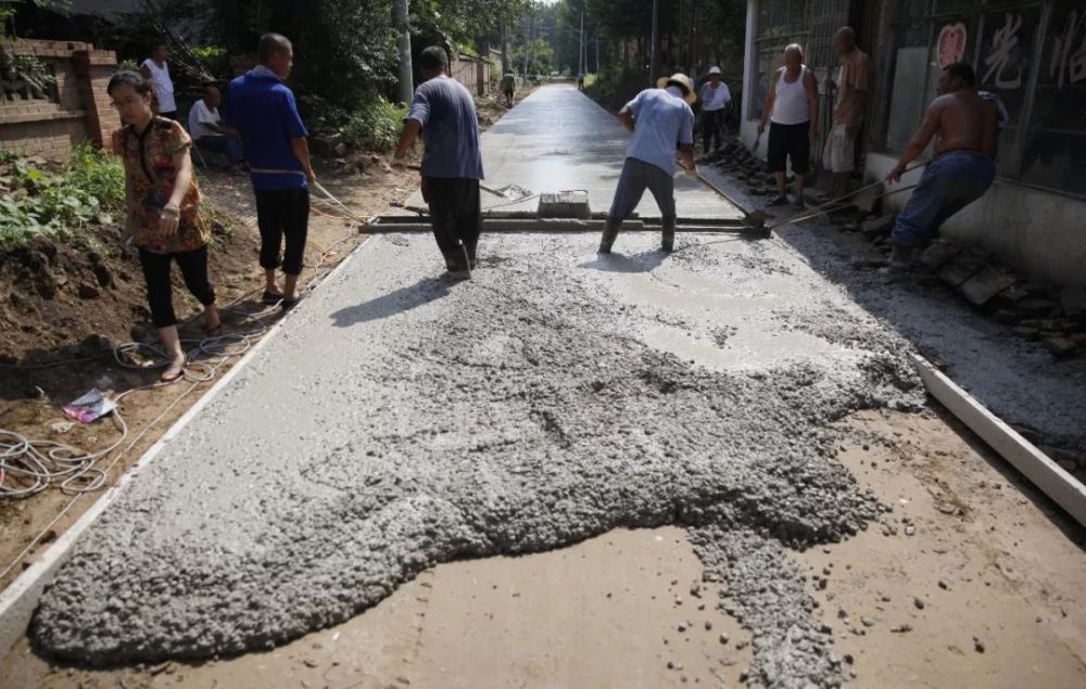 2013年7月23日,施工人員在廊坊市安次區(qū)楊稅務鄉(xiāng)南史務村實施村莊街道路面硬化工程。(新華社記者王申 攝)