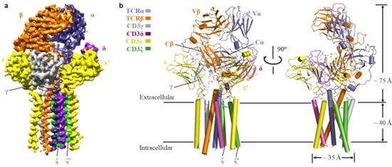 對(duì)此,文章審稿人的評(píng)價(jià)是:“該研究工作代表了細(xì)胞適應(yīng)性免疫的分子機(jī)理研究的一個(gè)重要里程碑。通過(guò)闡明第一個(gè)在膜上組裝的T細(xì)胞受體和其CD3共受體的結(jié)構(gòu),極大地增加了我們對(duì)T細(xì)胞識(shí)別抗原反應(yīng)的激活機(jī)制的理解?!?/p>