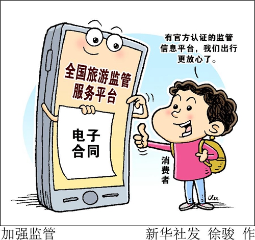 “我剛給全家人從旅行社訂了跟團(tuán)游,就收到了提醒簽約旅游電子合同的短信。有官方認(rèn)證的監(jiān)管信息平臺(tái),我們出行更放心了?!鄙虾J忻穹节S梅說,家人和朋友對(duì)納入“全國旅游監(jiān)管服務(wù)平臺(tái)”的電子合同頻頻點(diǎn)贊。