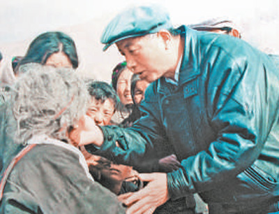 在西藏工作,孔繁森深深愛上了這片壯麗、神奇的高原,還有這里的人民。1988年,山東再次選派進(jìn)藏干部,孔繁森第二次赴藏工作。進(jìn)藏后,孔繁森擔(dān)任拉薩市副市長,分管文教、衛(wèi)生和民政工作。到任僅4個月,他就跑遍了全市8個縣區(qū)所有的公辦學(xué)校和一半以上的村辦小學(xué),為發(fā)展少數(shù)民族的教育事業(yè)奔波操勞;為結(jié)束尼木縣續(xù)邁鄉(xiāng)等3個鄉(xiāng)群眾易患大骨節(jié)病的歷史,他多次爬到海拔近5000米的山頂水源處采集水樣,幫群眾解決飲水問題;在了解農(nóng)牧區(qū)缺醫(yī)少藥的情況后,他每次下鄉(xiāng)時都特地帶一個醫(yī)療箱,工作之余就給農(nóng)牧民群眾認(rèn)真地聽診、把脈、打針……