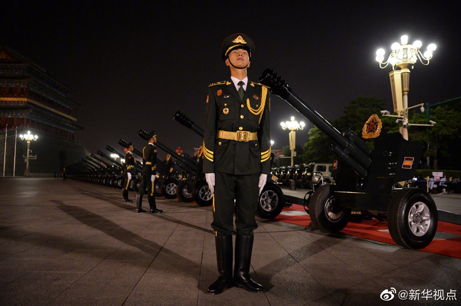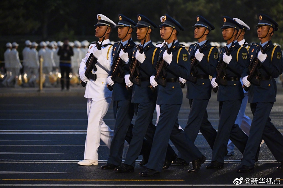 晨曦微露,裝點一新的東長安街上,三軍列陣,鐵甲生輝,參加國慶70周年閱兵的全體受閱官兵集結(jié)完畢,雄姿英發(fā)、精神抖擻。由人民解放軍、武警部隊和民兵預(yù)備役部隊約15000名官兵、580臺(套)裝備組成的15個徒步方隊、32個裝備方隊,沿東長安街綿延向東約2公里;陸、海、空航空兵160余架戰(zhàn)機(jī),組成12個空中梯隊,在北京周邊多個機(jī)場整裝待發(fā)。?