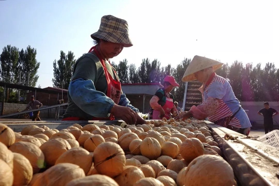 9月26日,河北遵化。東舊寨鎮(zhèn)果農(nóng)們迎來核桃大豐收。作者:小溪