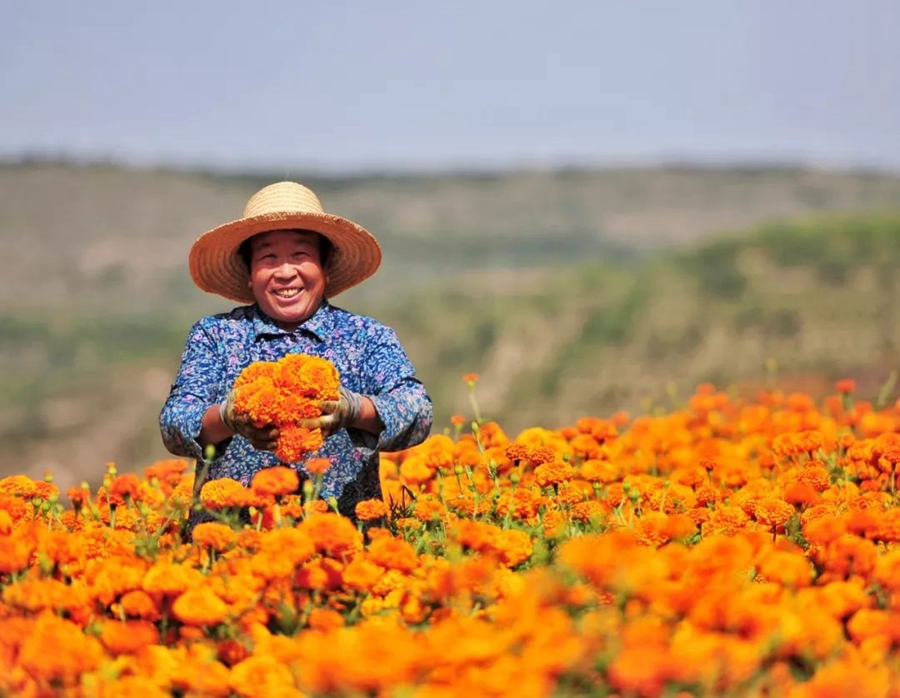 9月12日,寧夏彭陽(yáng)。種植萬(wàn)壽菊,不僅發(fā)展了旅游業(yè),也讓當(dāng)?shù)乩习傩者^上了好日子。作者:瑾