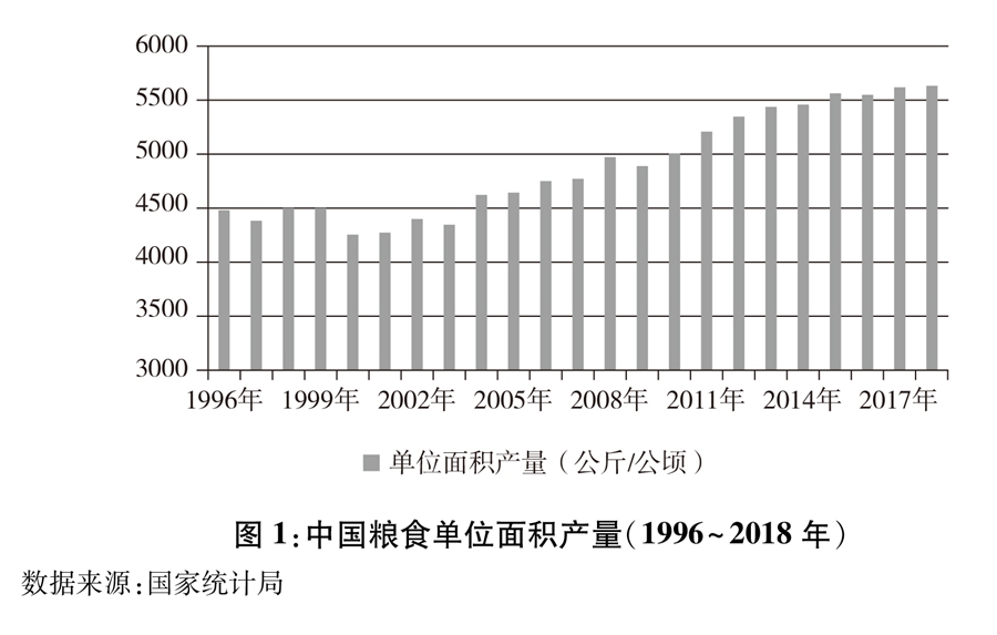 圖1:中國糧食單位面積產量(1996~2018年) 新華社發(fā)