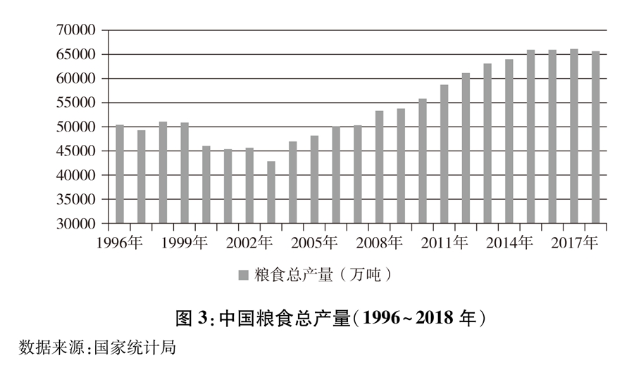 圖3:中國糧食總產量(1996~2018年) 新華社發(fā)