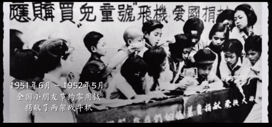 1951年6月,全國少先隊員通過搜集廢銅、廢鋼鐵,打柴割草,飼養(yǎng)小牲畜等,用自己的勞動成果和零用錢,支持購買飛機,派出代表參加赴朝慰問團,還給志愿軍寫信、慰問軍烈屬。