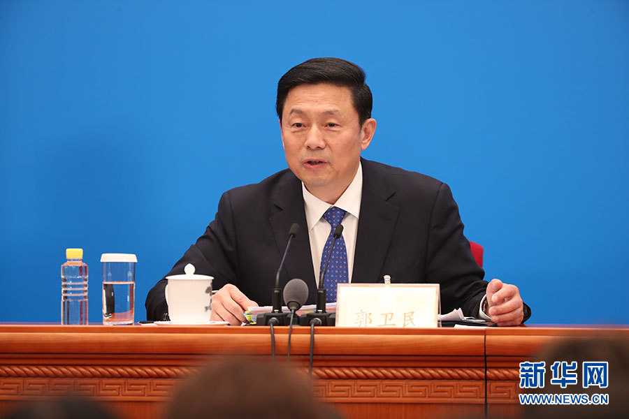 全國(guó)政協(xié)十三屆二次會(huì)議新聞發(fā)布會(huì)于3月2日15:00在人民大會(huì)堂一層新聞發(fā)布廳召開,大會(huì)新聞發(fā)言人郭衛(wèi)民向中外媒體介紹本次大會(huì)有關(guān)情況并回答記者提問(wèn)。圖為大會(huì)新聞發(fā)言人郭衛(wèi)民回答記者提問(wèn)。新華網(wǎng)/中國(guó)政府網(wǎng) 陳杰 攝