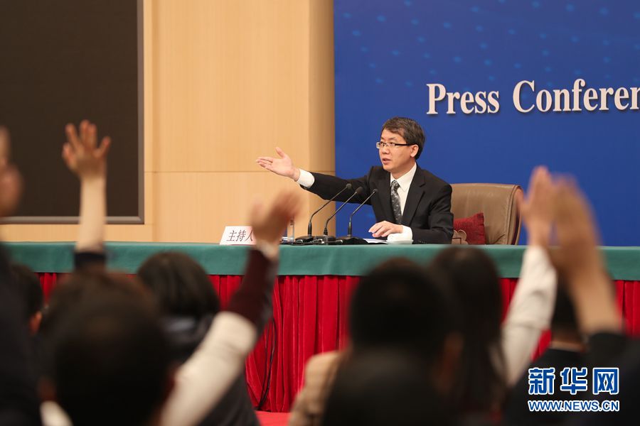 十三屆全國人大二次會議新聞中心于3月7日10時50分在梅地亞中心新聞發(fā)布廳舉行記者會,邀請國務院扶貧開發(fā)領導小組辦公室主任劉永富就“攻堅克難——堅決打贏脫貧攻堅戰(zhàn)”相關問題回答中外記者提問。圖為記者會主持人。新華網(wǎng) 陳杰 攝