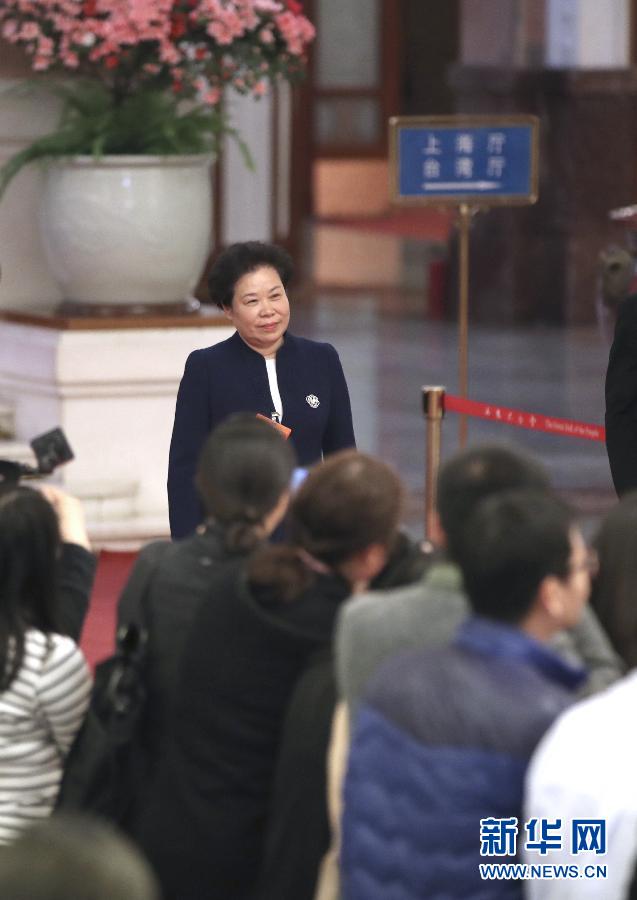 3月8日,十三屆全國人大二次會議在北京人民大會堂舉行第二次全體會議。這是中國氣象局局長劉雅鳴步入“部長通道”,準備接受采訪。 新華社記者金立旺攝