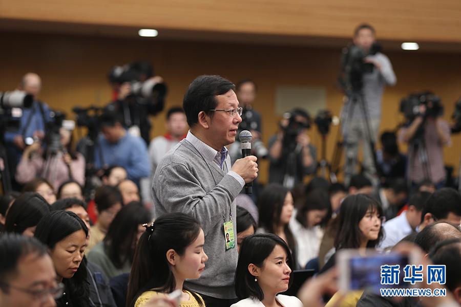 十三屆全國人大二次會議新聞中心于3月10日(星期日)上午10時30分在梅地亞中心新聞發(fā)布廳舉行記者會,邀請中國人民銀行行長易綱,副行長陳雨露,副行長、國家外匯管理局局長潘功勝,副行長范一飛就“金融改革與發(fā)展”相關問題回答記者提問。圖為路透社記者提問。新華網(wǎng)/中國政府網(wǎng) 劉廈 攝