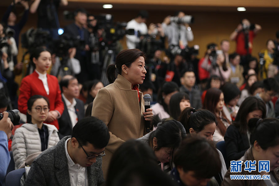 全國(guó)政協(xié)十三屆二次會(huì)議3月10日(星期日)上午8:45在梅地亞兩會(huì)新聞中心舉行記者會(huì),邀請(qǐng)5位政協(xié)委員就“新時(shí)代政協(xié)履職”回答記者提問(wèn)。新華網(wǎng)、中國(guó)政府網(wǎng)進(jìn)行現(xiàn)場(chǎng)直播。圖為中國(guó)國(guó)際電視臺(tái)CGTN記者提問(wèn)。新華網(wǎng)/中國(guó)政府網(wǎng) 劉廈攝