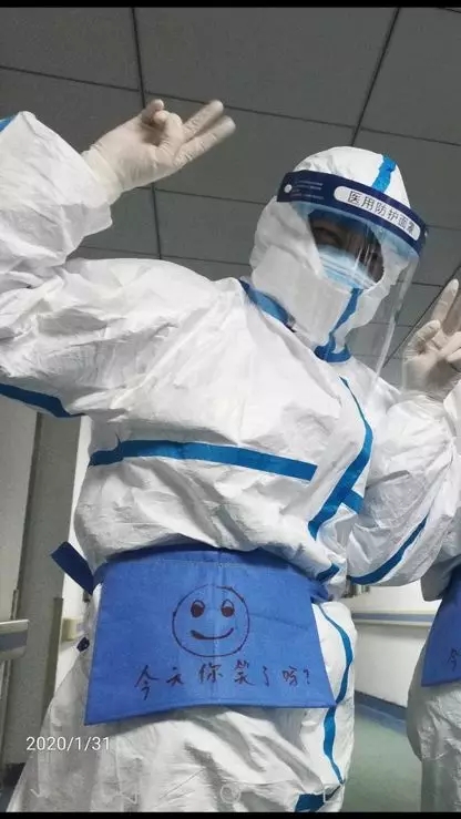 46歲的金銀潭醫(yī)院南四病區(qū)護士長吳靜,給科室護士腰間藍色袋子畫的笑臉