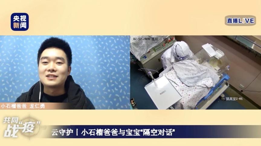 目前,石榴爸爸已經(jīng)出院,處在居家隔離狀態(tài)。他通過(guò)央視新聞《武漢云守護(hù)石榴寶寶》網(wǎng)絡(luò)直播,關(guān)注著寶寶的一舉一動(dòng),高興的心情溢于言表。在爸爸眼里,寶寶的每一次翻身、吃奶、舉手、抬腿,不管什么動(dòng)作都是最美好的。