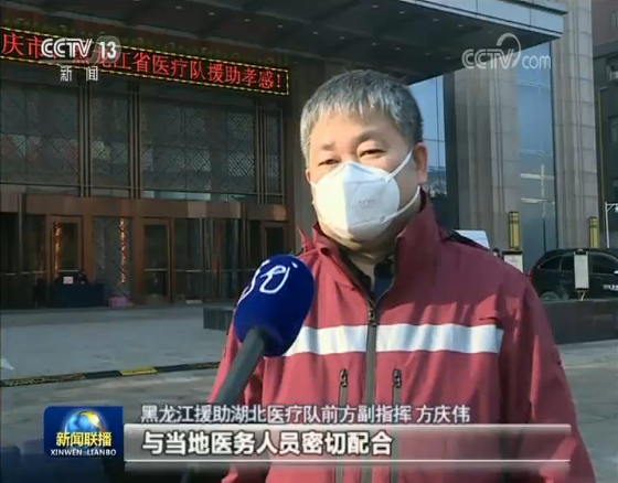 黑龍江援助湖北醫(yī)療隊前方副指揮 方慶偉:與當(dāng)?shù)蒯t(yī)務(wù)人員密切配合,在防上去下功夫,從源頭上去控制,降低(疾?。┌l(fā)生率,加大收治率,然后提高治愈率。