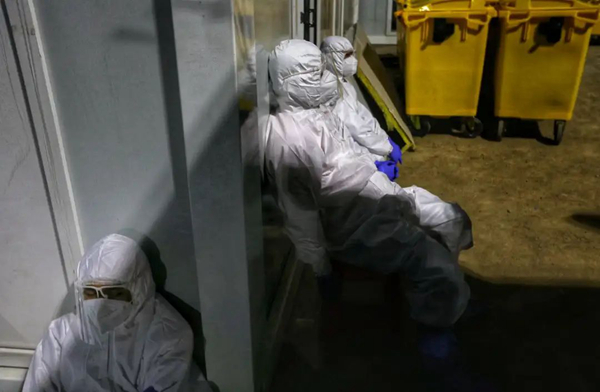 在被問到承擔(dān)這樣一項危險的工作時是否感到害怕,一位負(fù)責(zé)處理醫(yī)療廢棄物的師傅稱,“其實我們也害怕,但是不頂上去不行,我就告訴自己我們這是在為國家做貢獻(xiàn)。”