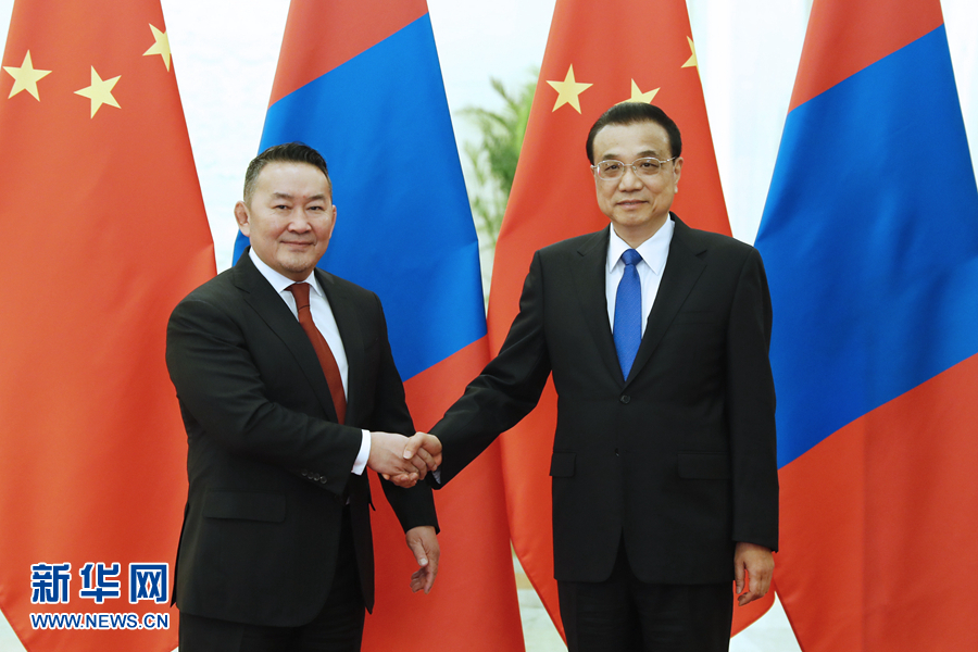 2月27日,國務(wù)院總理李克強(qiáng)在北京人民大會堂會見蒙古國總統(tǒng)巴特圖勒嘎。 新華社記者 劉彬 攝