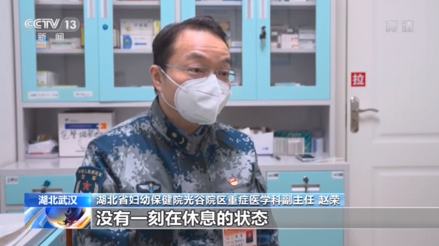 湖北省婦幼保健院光谷院區(qū)重癥醫(yī)學(xué)科副主任 趙榮:他隨時(shí)都有可能處在一種搶救狀態(tài),一個(gè)班4個(gè)醫(yī)生6個(gè)護(hù)士,甚至要6個(gè)護(hù)士進(jìn)紅區(qū),大家從進(jìn)來到出去沒有一刻在休息。