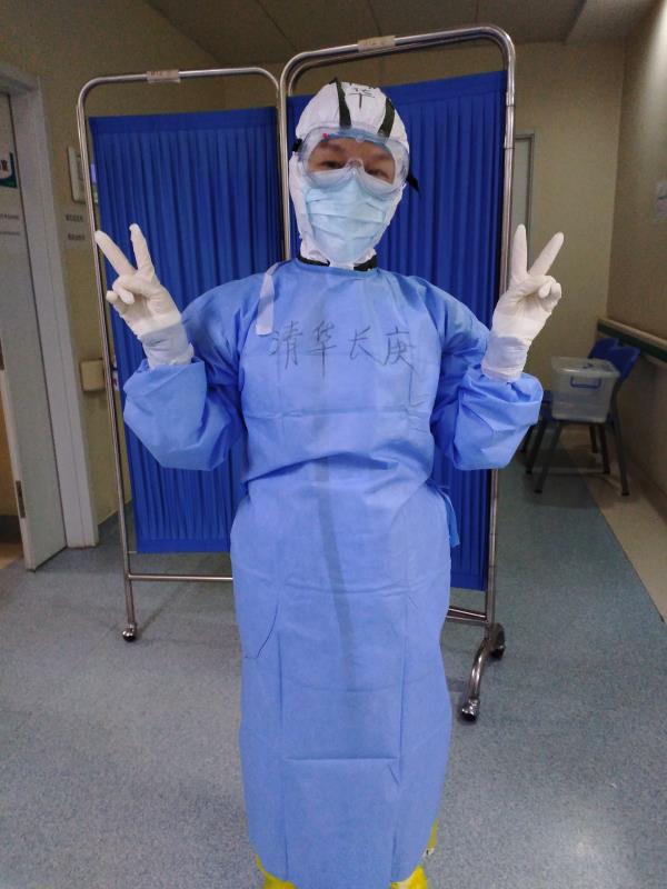來到武漢已經(jīng)一個(gè)月了,周華坦言自己很想家。老父親因病排尿困難,長(zhǎng)期插著導(dǎo)尿管,平日里都是周華親自給父親更換。如今,照顧年邁的父親和兒子的重任都落在愛人的身上了。同學(xué)、同事聽說她去醫(yī)療隊(duì),紛紛打電話、發(fā)微信告訴她“家里有事找我吧”。和家里人視頻,老父親耳背常聽不清她講話,她就沖著屏幕笑,給老父親豎大拇指,讓他知道自己很好,讓他放心?!拔艺驹诰戎我痪€,是作為一名重癥醫(yī)學(xué)人的責(zé)任與使命,家人的支持讓我放下包袱、蹈險(xiǎn)逆行,后方的支援讓我堅(jiān)定信心、竭力抗疫。疫情不退,我們不撤!”